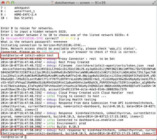 Si está instalado, el agente le dará un informe sano (como se muestra en la imagen proporcionada). Además, para más información sobre iotkit-admin comandos ver sección 5 'Notas sobre "Admin" comandos' en el archivo de Léame de iotkit agente.