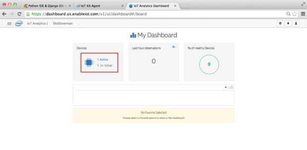 Después de activar el dispositivo, la pantalla de inicio del panel de IoT debe parecerse a la imagen, incluida aquí, donde se lee el cuadro "Dispositivo", "1 activo, 1 en Total". Si se registra múltiples dispositivos, estas cifras aumentarán.