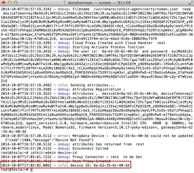 5. (CL) una vez activado el dispositivo, inicie el agente de iotkit escribiendo el script de Inicio: