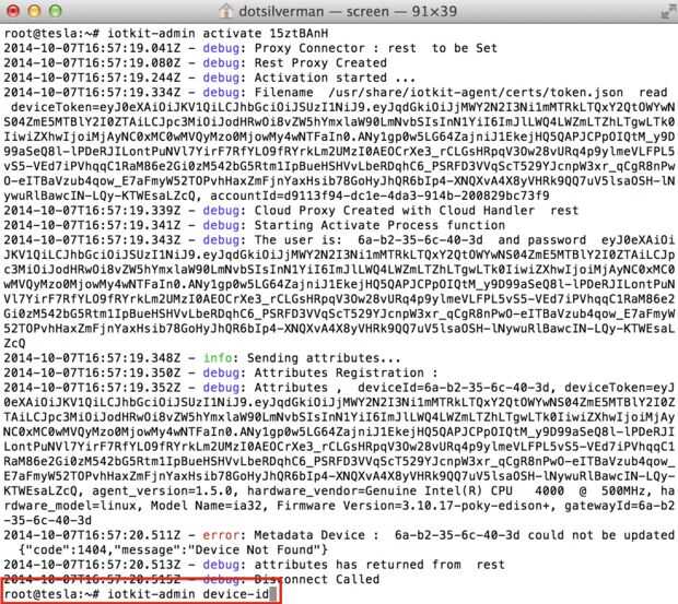 4. (CL) volver a la línea de comandos de Edison y activar el dispositivo, escriba