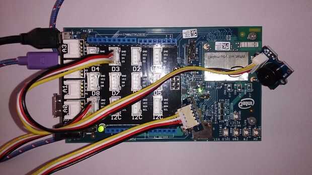 Montar al Edison con la Junta de Grove. Colocar el timbre en D4 y el acelerómetro en I2C.