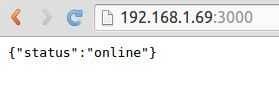 - 192.168.X.X:3000: solicitar si el servidor está ya sea disponible o no; Si así, nos vas a volver un "estatus: online" JSON como respuesta.