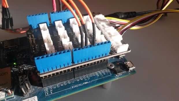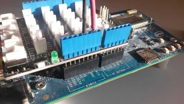 chip que tiene un alambre 4 interfaz SPI (se basa en el reloj para sincronizar la transmisión de datos) además de cable de conexión de alimentación de 5V. Para las conexiones del perno LED con conector de tablero de Edison: VCC 5V, GND a GND y DIN (datos) al pin 11, CS al pin 10 y CLK (reloj) al pin 13. Los comentarios en el código entran en más detalles sobre cómo mostrar letras y números diferentes, si desea personalizarlo.