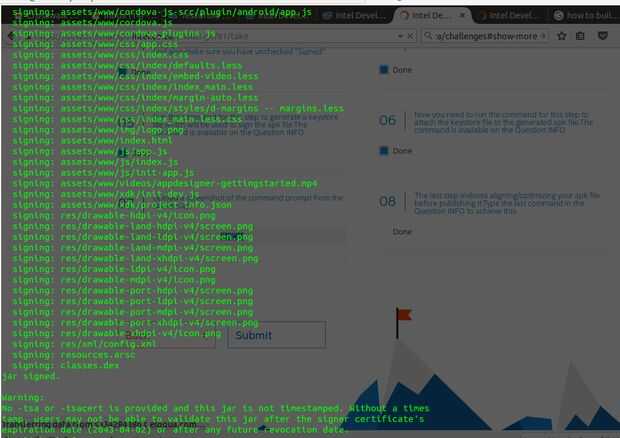 $ jarsigner-detallado - keystore PATH/TO/YOUR_RELEASE_KEY.keystore - storepass YOUR_STORE_PASS - keypass YOUR_KEY_PASS PATH/TO/YOUR_UNSIGNED_PROJECT.apk YOUR_ALIAS_NAME. Donde PATH/TO/YOUR_RELEASE_KEY.keystore: la ruta de acceso al almacén de claves. YOUR_STORE_PASS: es la contraseña que elegiste al crear un almacén de claves. YOUR_KEY_PASS: esto debe ser la misma que YOUR_STORE_PASS a menos que haya cambiado. PATH/to/YOUR_UNSIGNED_PROJECT.apk:is el camino para su aplicación sin firmar YOUR_ALIAS_NAME: es el alias que usted seleccionó cuando creó una clave