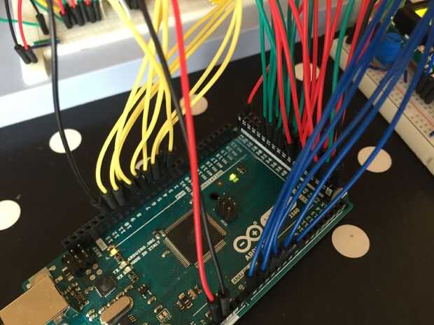 Tuve que usar el Arduino Mega (más que mi Uno) debido al número de pernos requeridos para todos los LEDs, botones y pantalla LCD. Por supuesto, puede quitar la pantalla LCD y los LEDs que anuncian el ganador si quieres pero aún necesita 28 pins!