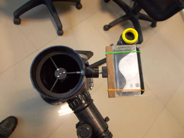 Tenía un accesorio rótula que pude fijar en el tubo del telescopio, pero uno debe ser capaz de trabajar un arreglo apropiado.