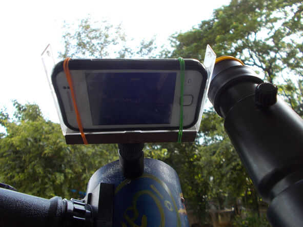 Luego cubrió el buscador. Poner el teléfono inteligente en el modo de mapa del cielo y por conseguir el sol en el centro de la pantalla.