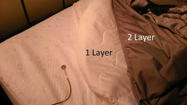 Por último, queremos desplegar todo lo que su ubicación real. Puesto que el sensor de fuerza es bastante fino y ligero, pude poner un pequeño trozo de cinta en ella y ponerla bajo el edredón. Si lo pones bajo suficientes piezas de ropa de cama, la persona que duerme en la parte superior apenas puede sentir, pero los sensores todavía funciona bastante bien.
