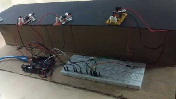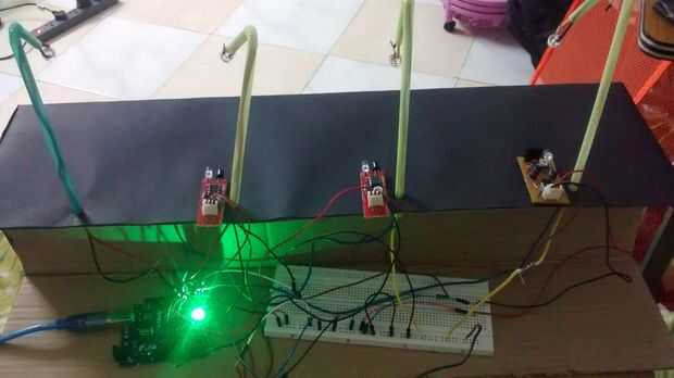 Conecte el sensor de infrarrojos 3 en el camino. Establece la sonsors IR para que cubren el camino entero. mantener la distancia entre el sensor según se requiera.