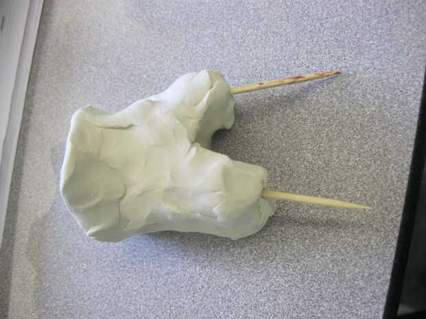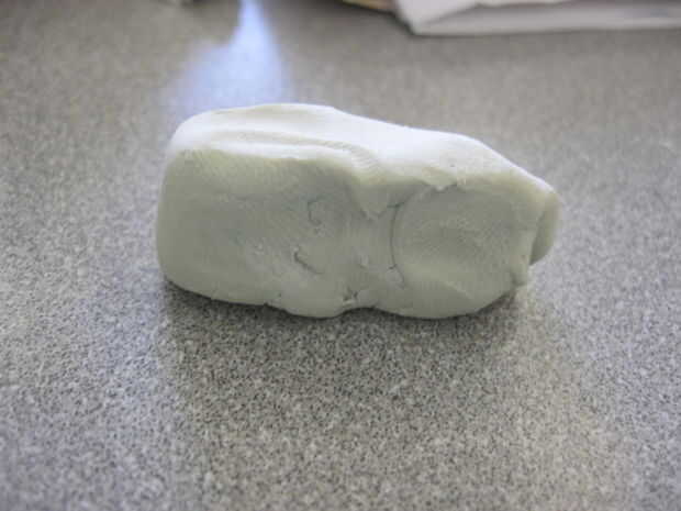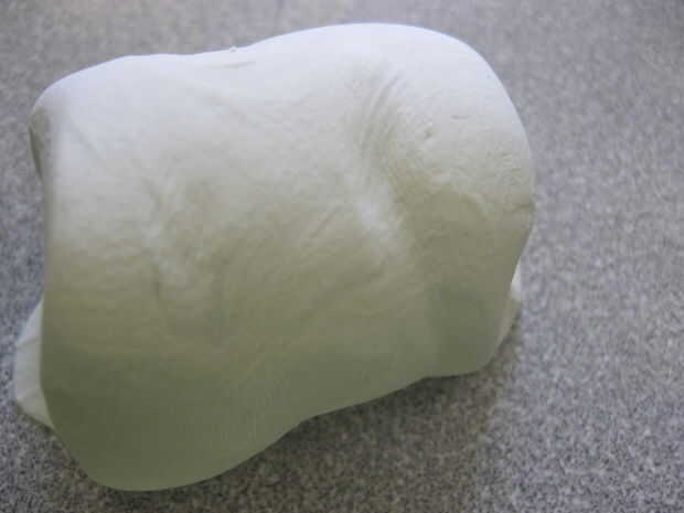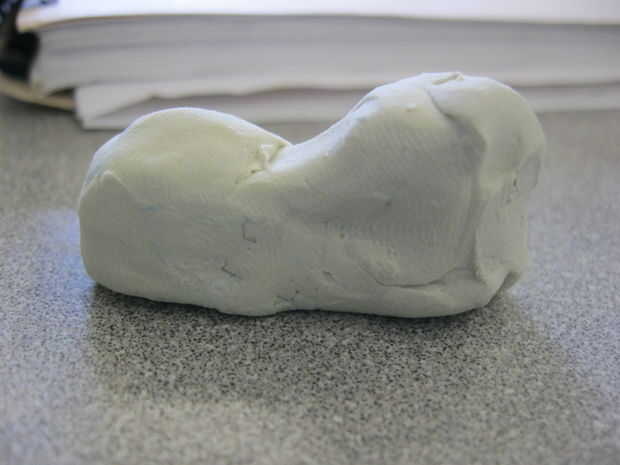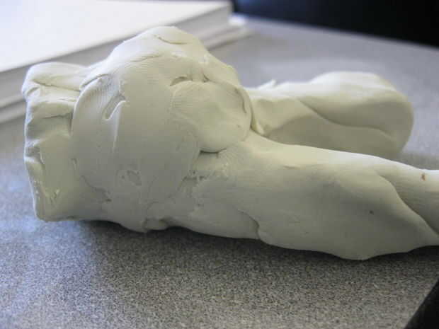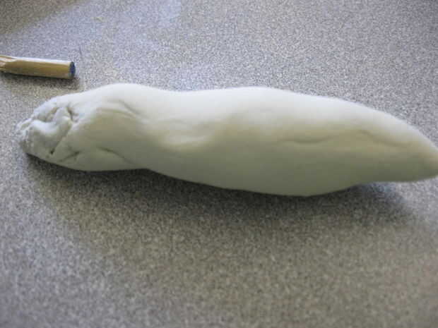 el paso 3 (pies)- empezar tomando algunos arcilla blanca y convirtiéndola en un óvalo como forma. como una mitad de pulgada de grosor, añadir algunos más arcilla hasta el extremo superior de la muestra para darle un aspecto redondo y más realista.