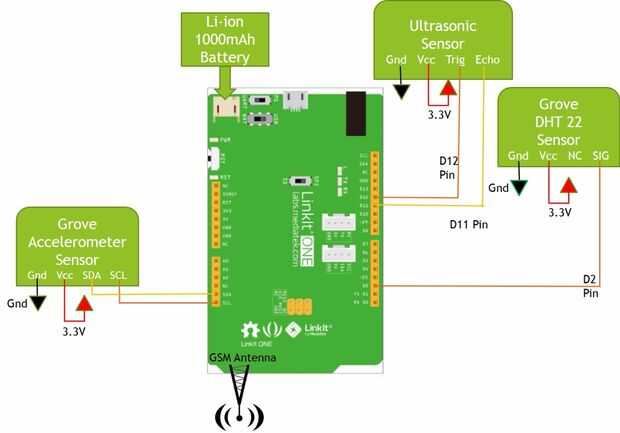 • Protector base Grove está conectado en la parte superior un LinkIt.