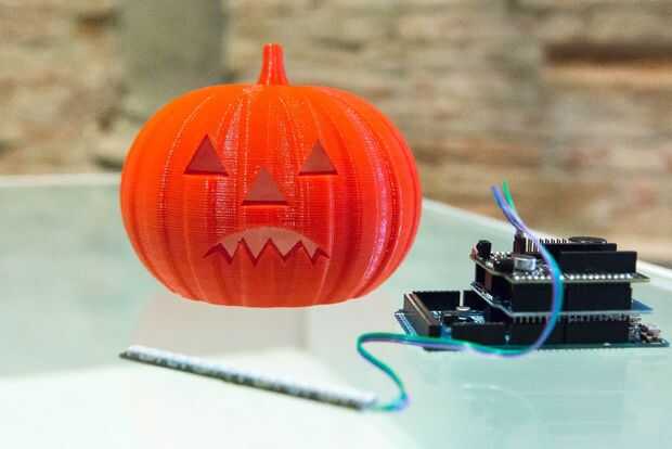 Poner en la lámpara calabaza 3D impreso todas las tablas y los LEDs y listo!