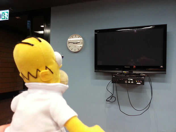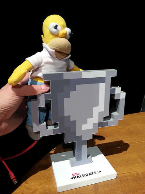 Este proyecto fue construido por en 24 horas SRG Hackdays con la ayuda de Gianni y. Homer incluso consiguió un trofeo, simplemente por encender un televisor!