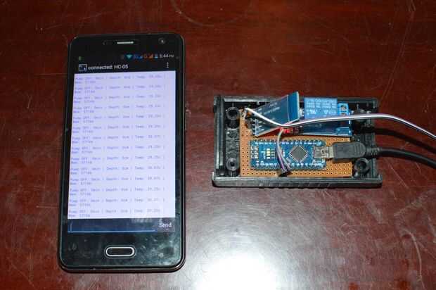 El controlador inteligente de la bomba fue diseñado para ayudar a administrar la vida de la bomba y llenar los tanques de agua con funcionamiento autónomo gestionado por un Arduino nano en su corazón. El módulo Blue-tooth permite monitoreo remoto y control de varias configuraciones de la bomba. En épocas de sequía o verano, es posible ajustar el tiempo de funcionamiento de la bomba y dejar intervalos así que hay tiempo suficiente para el agua a subir en el origen como en los pozos de diámetro y sacar agua a intervalos. Esto también asegura que la bomba no funcionará por más de determinado período de tiempo para evitar quemaduras y el recalentamiento de la bomba. El controlador de bomba inteligente permite todos estos parámetros a ser ajustados y monitoreadas remotamente con Blue-tooth. Los tanques se conectan en paralelo y uno de los tanques tendrá el sensor ultrasónico montado en la tapa para asegurar que el agua se bombea a una profundidad especificada y detiene la bomba una vez que esté completo. Esto asegura que el agua no consigue perdido o seguir funcionando tal como cuando se conecta a un dispositivo temporizador estándar solamente.