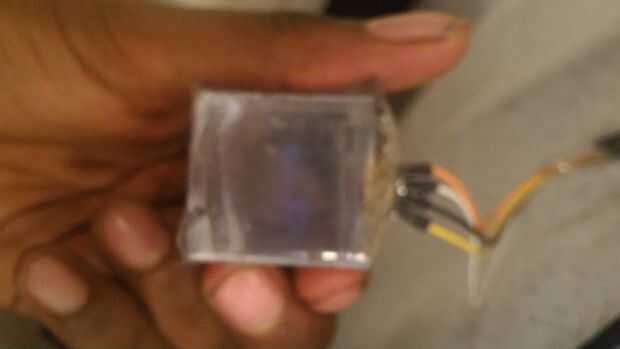 Fijar el refractor de luz colocando la sexta pieza diagonalmente dentro del cubo.