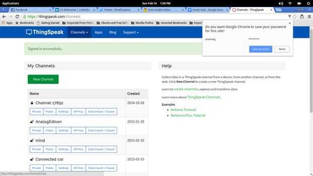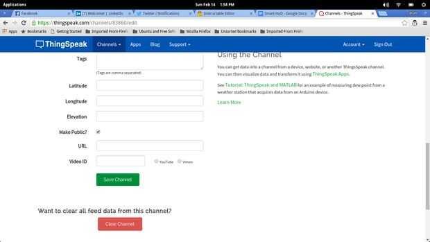 Ahora puede insertar datos a la nube. Usé ThingSpeak plataforma para visualización de datos.