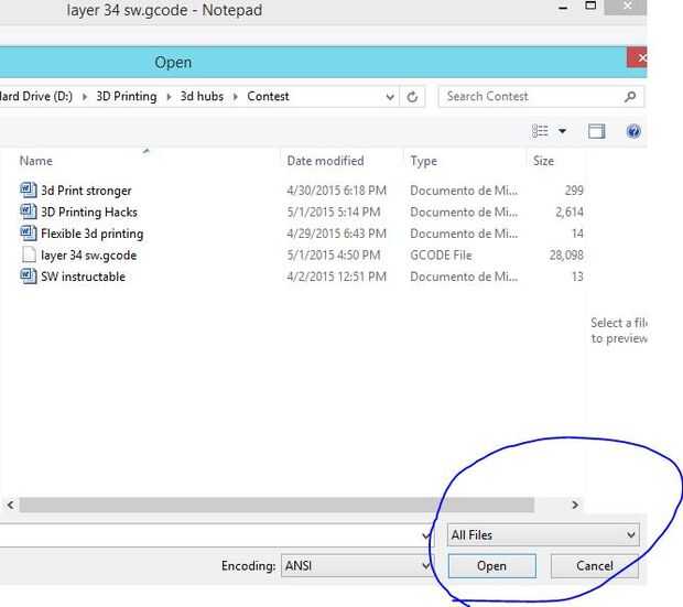 -Una vez que se ha guardado, abrir el código de G de Bloc de notas. Asegúrese de que se cambia de "documentos de texto" a "Todos los archivos" como se muestra en la imagen adjunta.