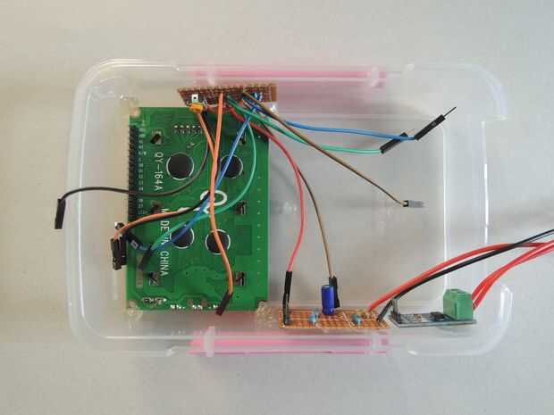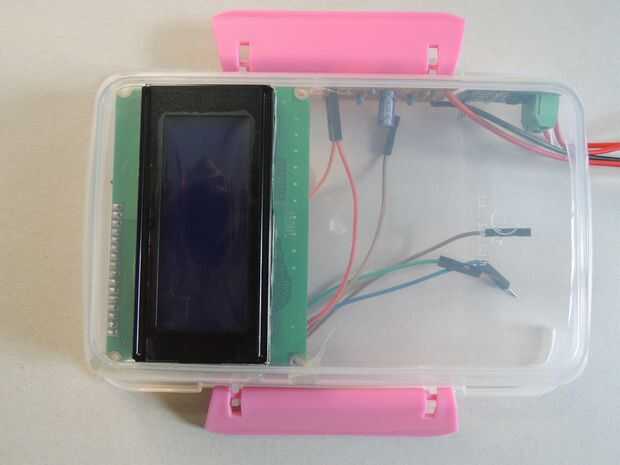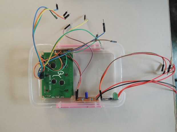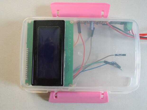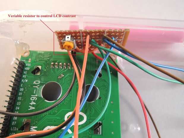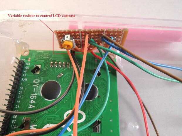 3. circuito de ajuste de contraste de LCD fijo a la caja con pegamento
