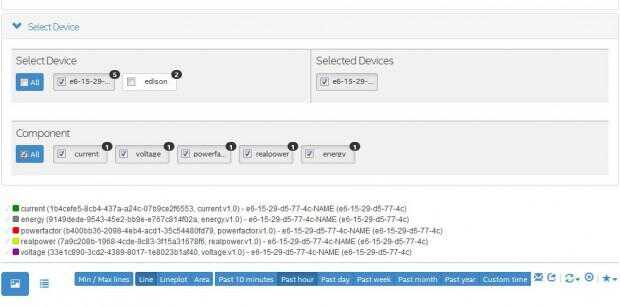 Diferentes tablas para los datos cargados de arduino a IoT Analytics se unen aquí. IoT Analytics muestra datos distintos en diferentes colores.
