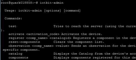 Si ves un mensaje que comienza con, "uso: iotkit-admin test ... ", como se muestra a continuación, el agente está ya instalado.