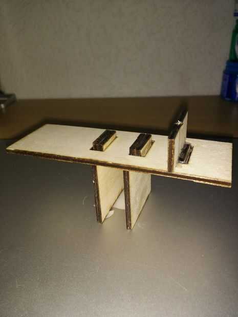 Construyó un marco de madera de triplex con el cortador del laser. Y pegados juntos. Hice un simple Adobe Illustrator SVG y "imprimió" a la cortadora del laser de trojec después de alinear la altura de la cabeza del láser y ajustar la posición de la triplex.