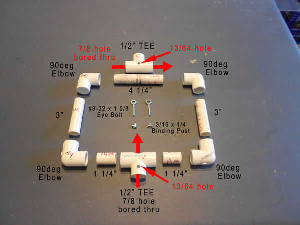 4) lo mismo para la parte inferior t, pero el agujero de 7/8 pasará a través de la mitad de la t de todo el camino a través de la parte trasera. Haciendo así que la pipa del PVC y deslice la derecha a través.