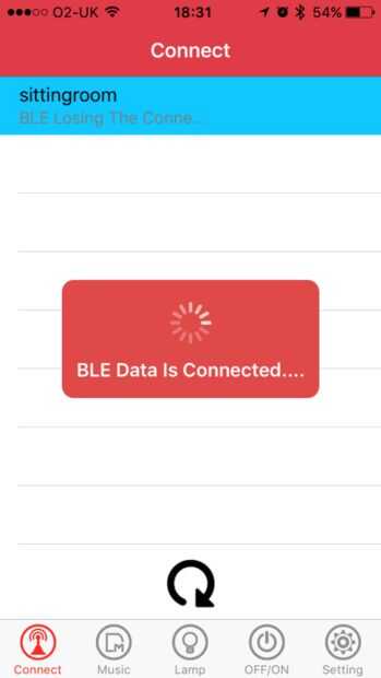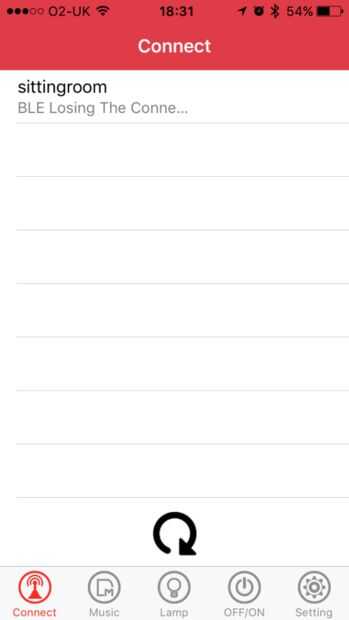 Tras descargar e instalar la primera cosa que me se ha disparado hasta un poco es que inicialmente cuando se conecta dos dispositivos Bluetooth que se enumeran. Encontré que tenía que volver de la aplicación y entrar en Bluetooth en ajustes y emparejar para arriba con el bulbo y el bulbo con BLE (Bluetooth 4.0 baja energía). La conexión no BLE se utiliza para transmitir el audio y la conexión de BLE se utiliza para controlar el LED encendido y apagado así como lo que le permite cambiar el color. Usted debe Asegúrese de que su tablet/teléfono admite BLE si desea sacar el máximo provecho de él.