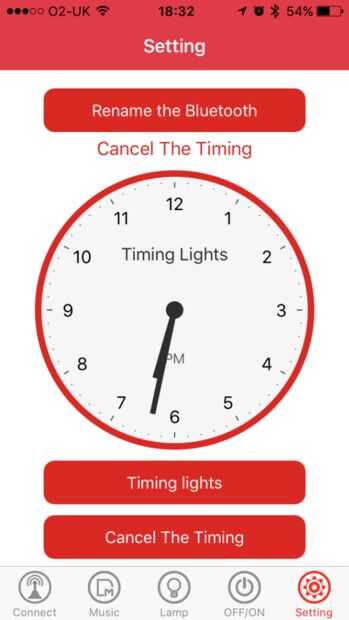 Por último hay un cuadro de configuración que permite cambiar el nombre de la lámpara así como establecer un temporizador de apagado. No puedo ver el temporizador es demasiado útil y no demasiado bien está diseñado en mi opinión ya que es al principio confuso. El tiempo indica el tiempo antes de la fuerza de voluntad de las luces, esto no cuenta hacia abajo sin embargo. La función de cambio de nombre es sin embargo más útil como usted puede nombrar el bulbo algo más útil como salon como en el ejemplo mostrado.