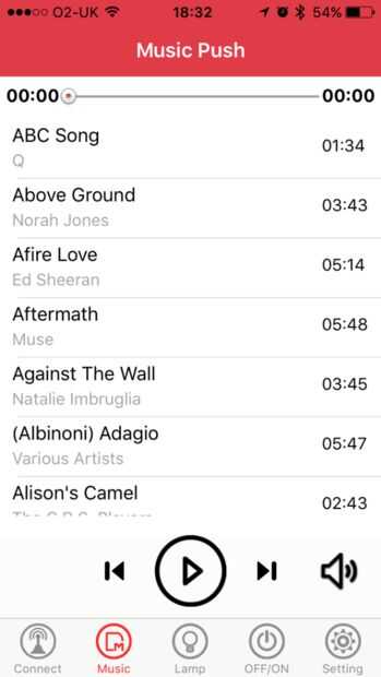 Al conectar la bombilla va a la pestaña música. Con toda sinceridad creo que es mejor regresar a la música principal de la aplicación en IOS sobre todo que le da un mayor control para que pueda seleccionar los álbumes o elegir una lista de reproducción etc..