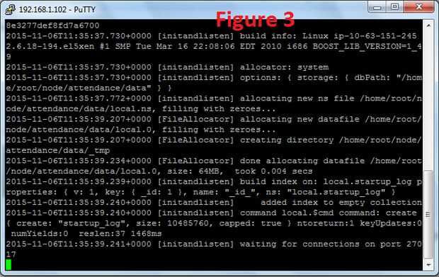 4. conectar la base de datos a la aplicación escribiendo en otra ventana de terminal(Nota: directorio llamado datos fue creado anteriormente)