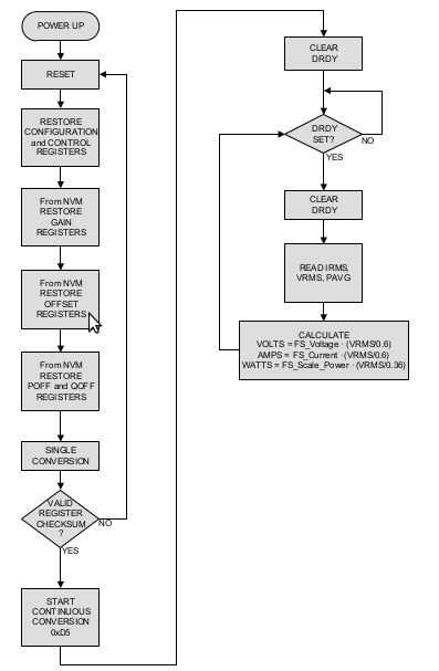 Escala MCU: El MCU es necesario leer todos los registros e interpretar los números hexadecimales de 24 bits basados en condiciones de plena carga. Conocer el hardware máximo escalado y la AFE más reciente registro de valores en relación con la entrada a gran escala, las rutinas MCU son capaces de calcular las mediciones de potencia.