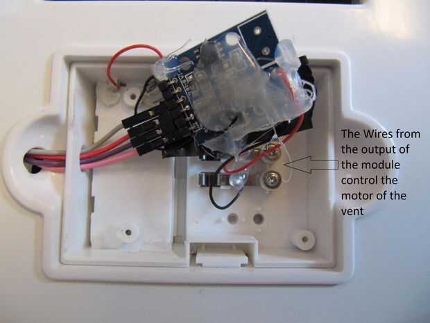 La salida del módulo se conectarán dentro de la caja de control de ventilación, en lugar de la electrónica original, como en la foto de arriba.