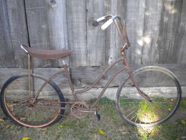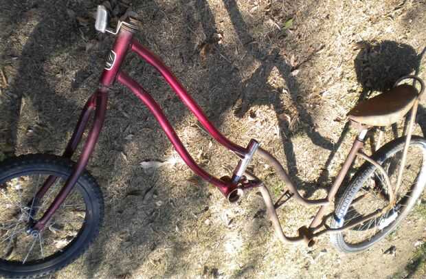 Después de que se desarmaron, hacksawed el Huffy-tubo de dirección en medio de arriba a abajo. Fue martillado alrededor de la tija de sillín marrón. (Foto 2)