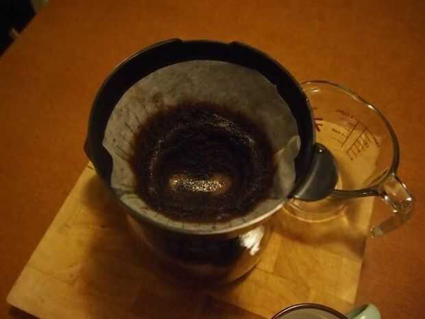 De la taza de medir, Vierta lentamente aproximadamente 50ml de agua caliente para el café. Comienzan en el centro y su forma de trabajo hacia el exterior para disfrutar de todos los terrenos.