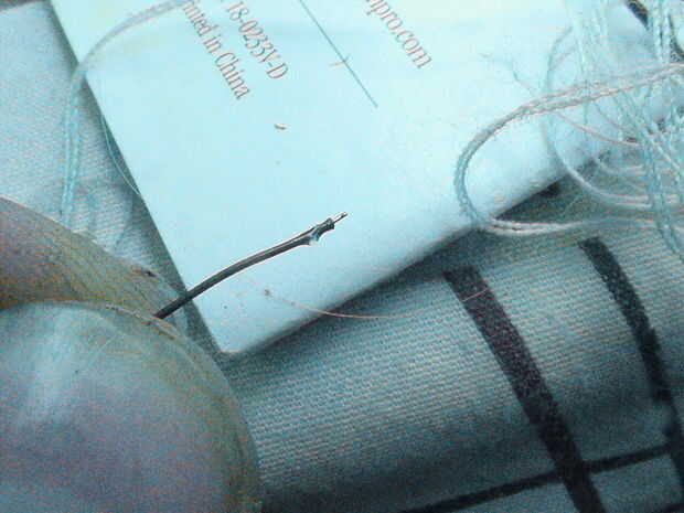 Entonces, sumerja la punta del alambre en el flujo, y luego la punta de soldadura al alambre. Se ve un pequeño soplo de humo, pero realmente no hay diferencia en la apariencia del cable.