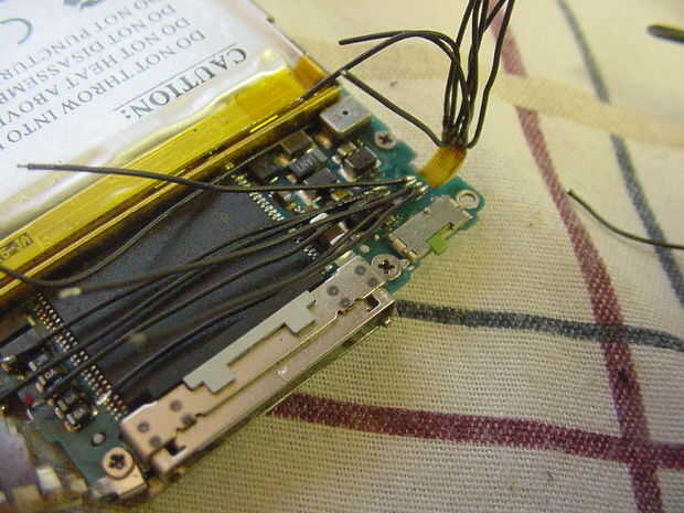 Al quitar los cables, tres más de conexión fueron ripeados forma la placa base. Era capaz de rastrear una conexión a un punto soldable, pero era incapaz de encontrar cualquier lugar en la placa madre donde se podrían soldar los otros dos. Lamentablemente, puedo ha llegado al final total de este proyecto.