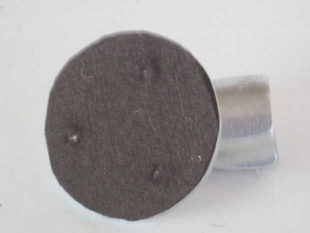 Cortar un círculo de la almohadilla de fieltro del mismo tamaño que la brida y fíjelo a la superficie inferior. Con una utilidad cuchillo corta una 'X' en cada uno de los agujeros de tres perno.