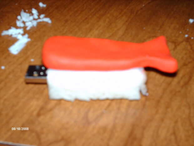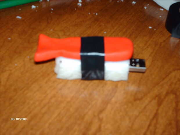 tengo un cierto amor de cambiar y modificar las cubiertas jumpdrive. Lo llaman pasión. Por lo tanto, he intentado hacer uno que se ve como el sushi! Lástima no tengo ningunas habilidades de trabajo de la arcilla...