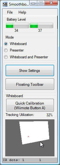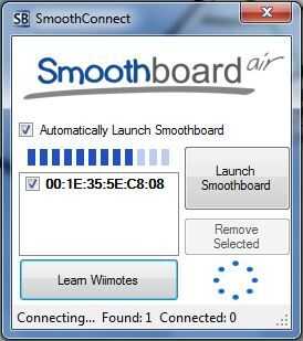 Puesta en marcha aire Smoothboard con dúo y continuar con la versión unregisterd. Cuando la interfaz de smoothboard cachorros op, simplemente esperar hasta el wii remote se ha conectado a la laptop (aparece en la interfaz).