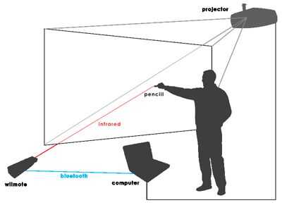 Se recomienda para el Wii mando a distancia un poco hacia los lados (como en la foto), pero en nuestra situación era beter para garantizar en el proyector mismo.