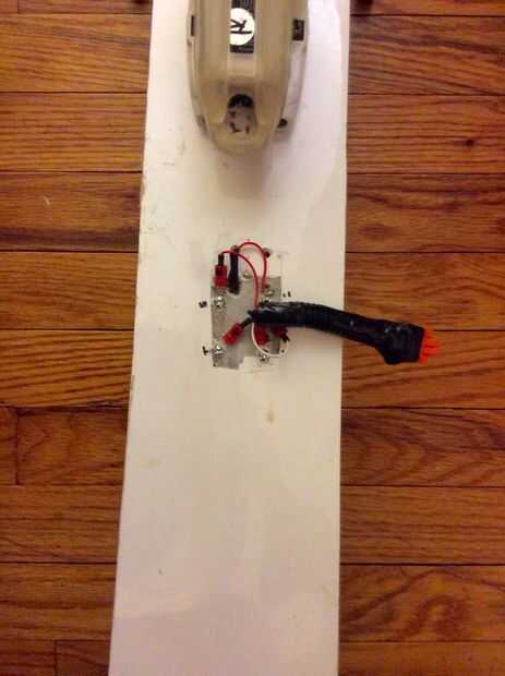 Pase los cables a través de la envoltura de cable a los conectores de ski para cada esquí. Hacerlos más largo así que usted puede rellenar las baterías y el controlador en tu paquete o bolsillo.