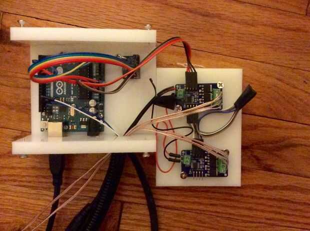 La base de la electrónica son un Arduino Uno, acelerómetro y un botón. Los ciclos de botón a través de los diferentes ajustes.
