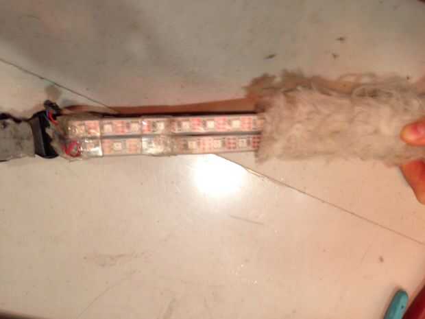 1. Poner la tira de LED que has soldado juntos en su cinturón. Usando cinta aislante transparente o cinta de embalaje, envolver trozos de cinta - un par de veces en un solo lugar - alrededor de la tira del LED y el cinturón. Asegúrese de la tira de la cinta hacia abajo en ambos extremos y en unos pocos lugares en el centro.