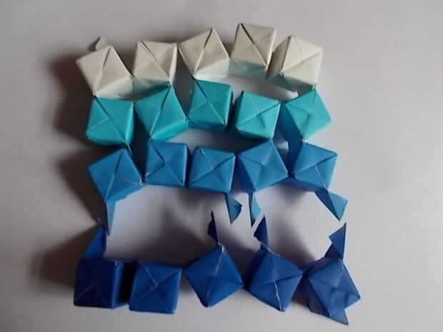 Origami modular en su mejor momento!He aprendido recientemente a utilizar origami modular para hacer cubos de colores vivos y alguien mencionó a me que podría ser utilizado para hacer figuras de Tetris. Eso fue todo la excusa que necesitaba para deja