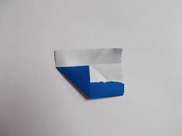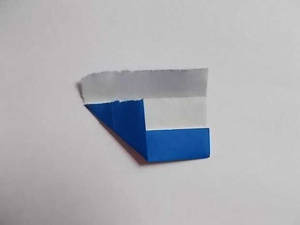 - Luego, con la esquina inferior izquierda doblada hacia arriba, doblar la solapa superior hacia abajo sobre él.