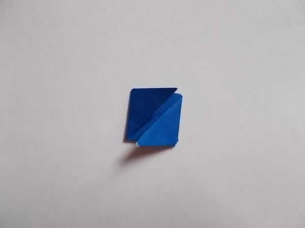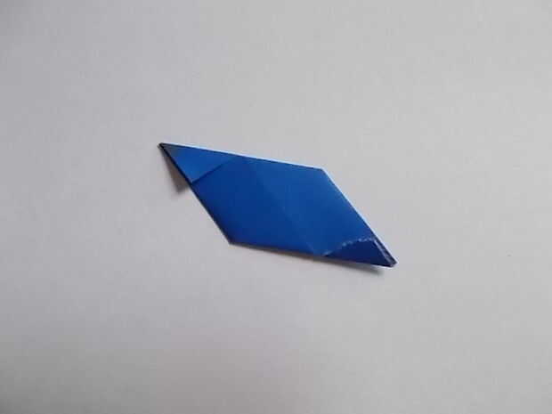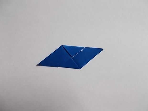 - Doblar los dos triángulos pequeños en la parte superior izquierda e inferior derecha hasta conseguir una forma de paralelogramo.