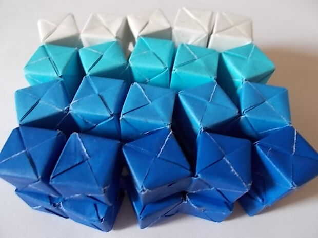 Origami modular en su mejor momento!He aprendido recientemente a utilizar origami modular para hacer cubos de colores vivos y alguien mencionó a me que podría ser utilizado para hacer figuras de Tetris. Eso fue todo la excusa que necesitaba para deja
