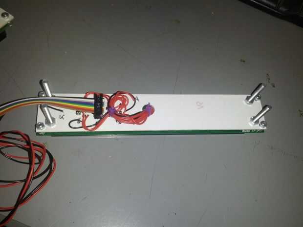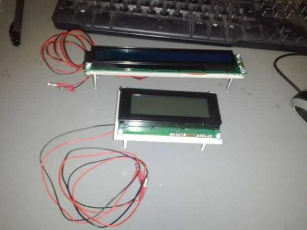 La Junta de arranque para el final de Arduino está comprometida principalmente de cables de un solo núcleo para conectar las líneas de datos con Arduino, dos potenciómetros para el control de contraste para cada pantalla y una conexión de energía, también hay una pequeña tabla con dos potenciómetros para controlar la intensidad de luz de fondo.