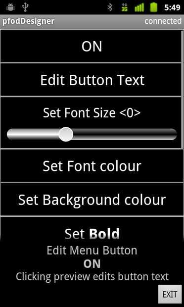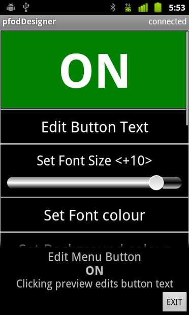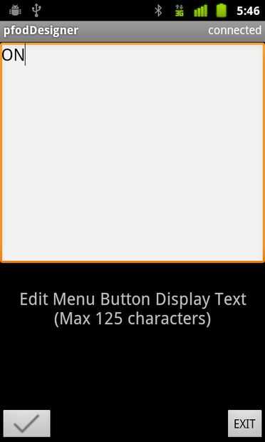 Cambiar el texto del botón en "ON". Eliminar cualquier espacio al inicio y luego haga clic en el botón de aceptar (abajo izquierda). Vuelve a la pantalla de botón Editar con la vista previa actualizada.
