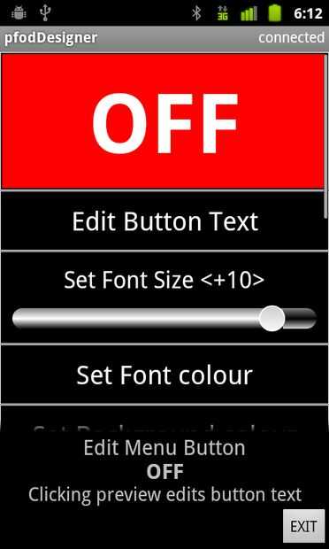 Terminar este botón de edición. Establecer el texto "OFF", el tamaño de fuente a < + > 10, establece el color de fondo en rojo y negrita.